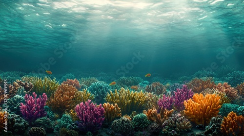 © ColorfulFlowerStudio, Fototapeta premium Vibrant Underwater Scene with Colorful Coral Reefs, Deep underwater scenes inspire wonder concept.
