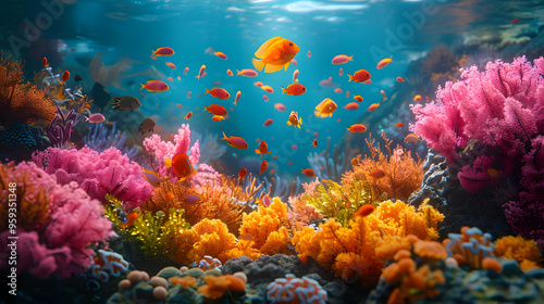 Naklejka premium Vibrant Underwater Scene with Colorful Fish and Corals - Illustration