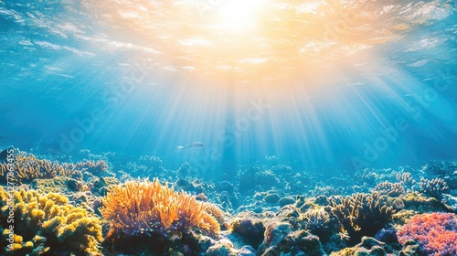 Obraz premium Vibrant Underwater Scene with Rays of Light and Colorful Corals