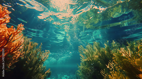 Fototapeta premium vibrant underwater scene with sunlight shining through the water, revealing...