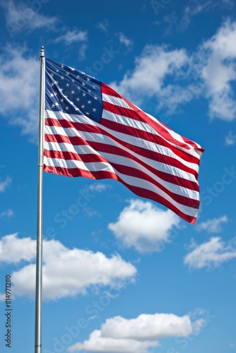 Fototapeta premium Vibrant united states flag gracefully waving under clear skies on a...