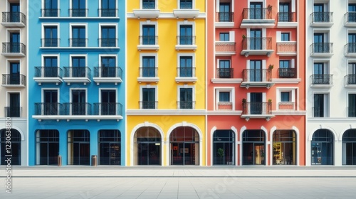 © Johannes, Fototapeta premium Vibrant Urban Apartment Building Facade with Retail Spaces