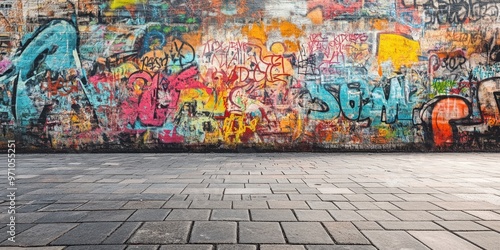 Fototapeta premium Vibrant urban graffiti wall showcasing colorful street art and textures,...