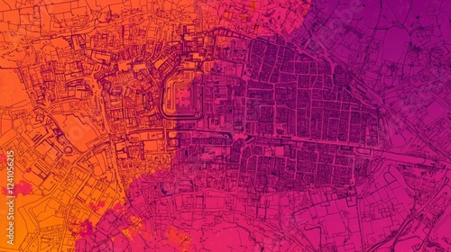 © Tangtong, Obraz premium Vibrant Urban Map Design with Gradient Colors Showcasing Detailed City Layout and Structure