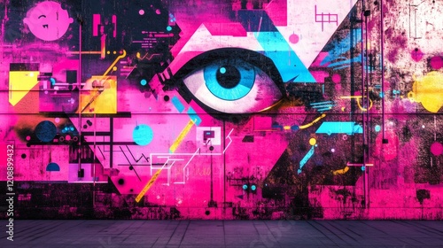 Obraz premium Vibrant urban mural showcasing artistic expression with powerful eye and...