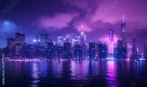 © VideoHub, Fototapeta premium Vibrant urban skyline illuminated with a glowing energy grid, merging modernity and innovation.