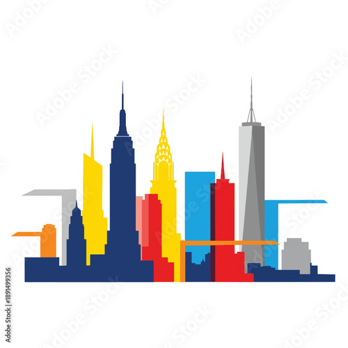 Obraz premium Vibrant Urban Skyline Vector Illustration Featuring Iconic Metropolitan...