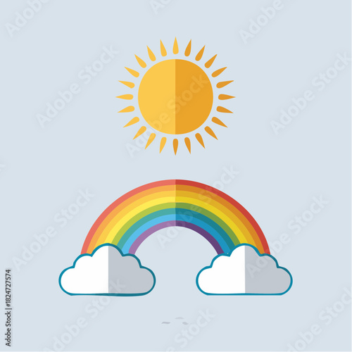 Fototapeta premium Vibrant vector art of sun and rainbow with cloudscape, perfect for weather...