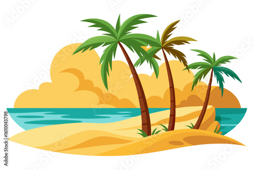 Obraz premium Vibrant vector illustration of a tropical beach with golden sand, turquoise...