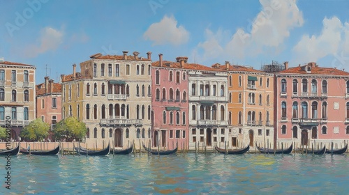 Naklejka premium Vibrant Venitian Waterfront with Colorful Historic Buildings and Boats