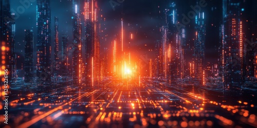 Fototapeta premium Vibrant Vertical Composition Highlighting Futuristic Urban Landscape