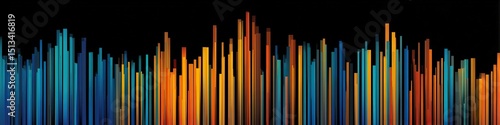 Obraz premium Vibrant vertical lines in a dynamic, abstract pattern against a dark background, creating a skyline effect.