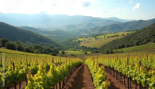 © SwathiFX, Fototapeta premium Vibrant Vineyard in the Heart of the Mountains