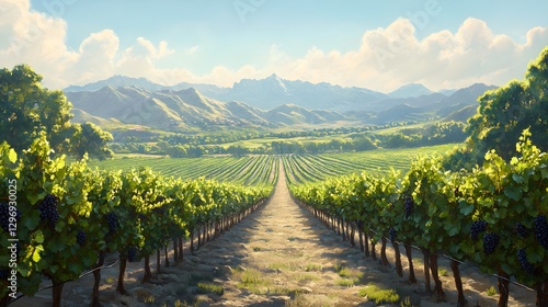 © Irita, Fototapeta premium Vibrant Vineyard Ready for Harvest with Ripe Grapes – Generative AI