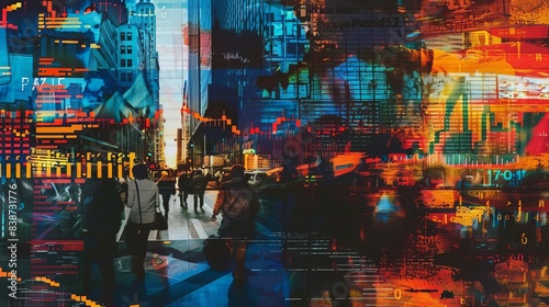 © nunoi, Obraz premium Vibrant volatility collage featuring rapid price changes, nervous investors, and market swings