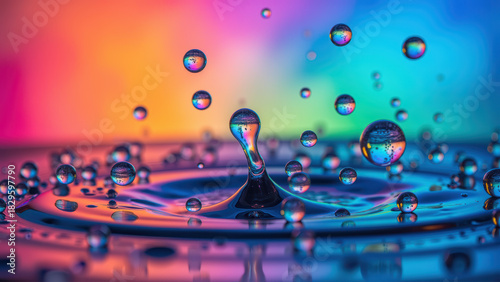 Obraz premium Vibrant water droplets create mesmerizing display against colorful...