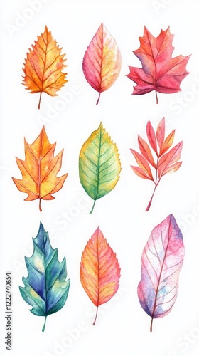 © Montaha Hossain, Obraz premium Vibrant Watercolor Autumn Leaves Collection