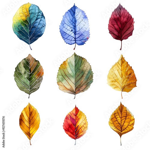 Obraz premium Vibrant Watercolor Autumn Leaves Collection Against Crisp White Background