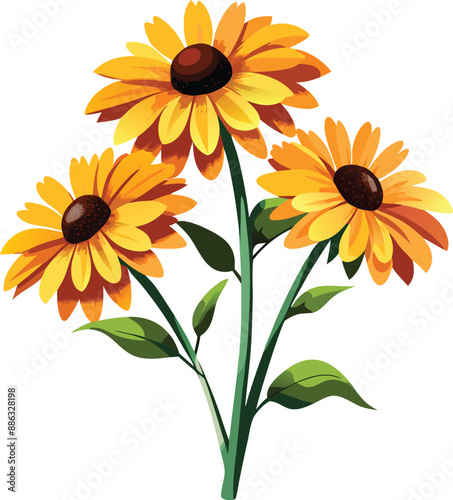 Obraz premium Vibrant watercolor Black-Eyed Susan vector blooms with golden petals.