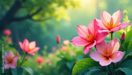 © Kachaphot, Obraz premium Vibrant watercolor blooms in lush garden setting, garden design, garden