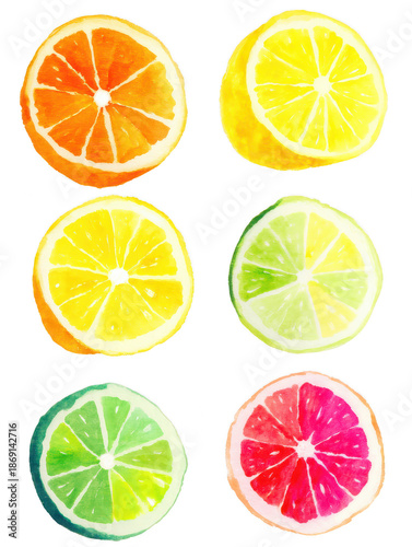 Fototapeta premium Vibrant Watercolor Citrus Fruit Slices