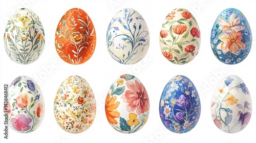 © Nisha50, Fototapeta premium Vibrant Watercolor Easter Egg Set with Floral Design