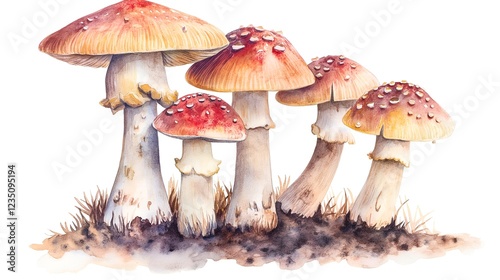 © hamad, Obraz premium Vibrant Watercolor Illustration of Mushrooms Perfect for Culinary Books, Botanical Posters, and Nature-themed Designs.
