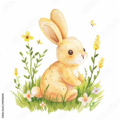 Fototapeta premium Vibrant Watercolor Illustration Welcoming Spring with a Playful Cartoon Twist