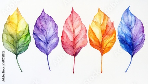 Fototapeta premium Vibrant watercolor leaves in various autumnal colors