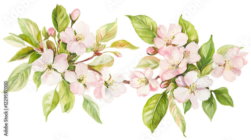 © Rostyslav, Fototapeta premium Vibrant Watercolor Spring Wreath of Cherry Blossoms and Green Leaves