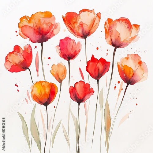 © ika, Obraz premium Vibrant Watercolor Tulips in Red and Orange