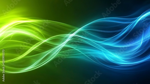 © Ira, Obraz premium Vibrant wave pattern with bold green and blue hues, glowing and smoothly flowing for a futuristic and dynamic feel