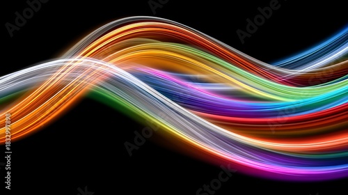 Fototapeta premium Vibrant waves of colorful light flowing seamlessly against a dark background, creating a captivating visual effect that radiates energy and movement.