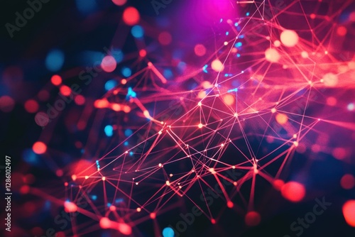 © Dinara, Fototapeta premium Vibrant web of light and color emerging from darkness in an abstract digital landscape. Generative AI