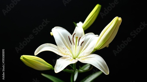 Fototapeta premium Vibrant white lily blooms elegantly against a dark background, symbolizing...
