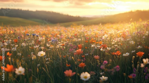 Fototapeta premium Vibrant Wildflower Meadow at Sunset
