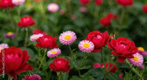 Fototapeta premium "Vibrant Wildflower Meadow: Macro Photography of Colorful Spring Blooms"
