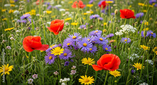 © Mukul, Fototapeta premium Vibrant wildflower meadow with poppies cornflowers and daisies on transparent background