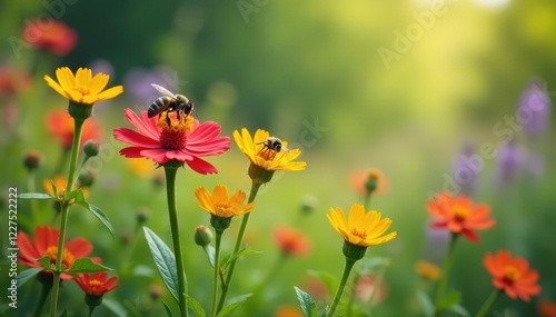 © sawaratch, Obraz premium Vibrant wildflowers bloom, attracting diverse insects , spring, wildlife