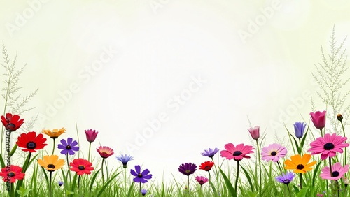 Obraz premium Vibrant Wildflowers in a Meadow Bordering a Soft White Background