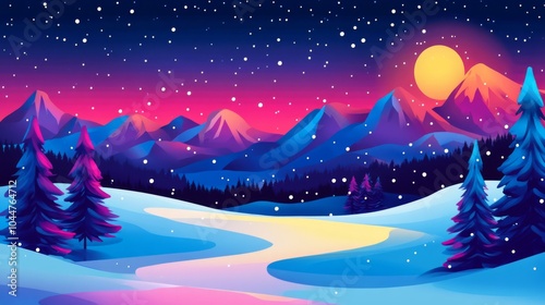 © AzSteel, Naklejka premium Vibrant Winter Scene with Gentle Lighting and Snowy Hills