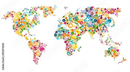 Fototapeta premium Vibrant World Map Mosaic Showcasing Diverse Continents and Countries