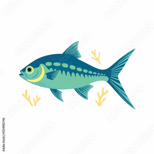© ON - Studio, Fototapeta premium Vibrant wrasse fish swimming among coral shapes, underwater beauty
