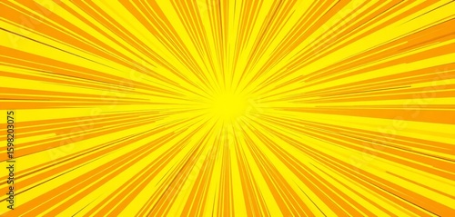 © Phitchaya, Obraz premium Vibrant yellow background with radiating sunburst rays, pop art style, burst, comic