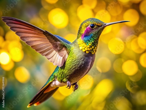 © prapatsorn, Fototapeta premium Vibrant Yellow-billed Hummingbird in Flight, Candid Nature Photography