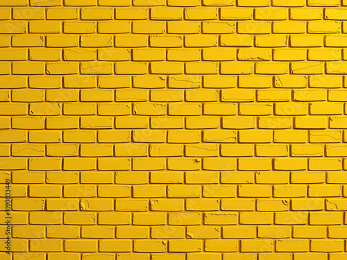 © สิริวุฒิ นาคโคตร, Obraz premium Vibrant yellow brick wall with geometric grid pattern, structure, abstract, decoration