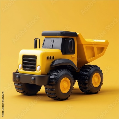 © JH45, Obraz premium Vibrant Yellow Construction Vehicle on Solid Background