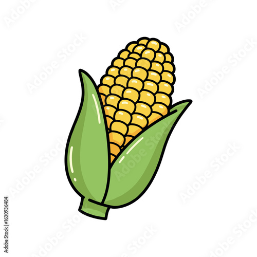 Obraz premium Vibrant yellow corn with green husks. Vector illustration