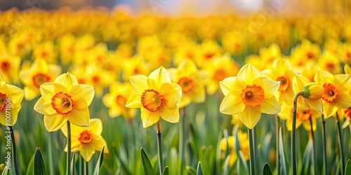 Fototapeta premium Vibrant yellow daffodils blooming in a field, signifying the start of spring,...