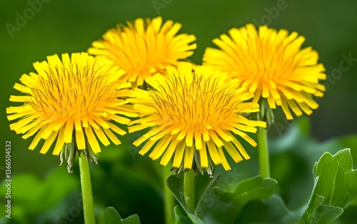© Rasel, Naklejka premium Vibrant Yellow Dandelions Close Up Photography
